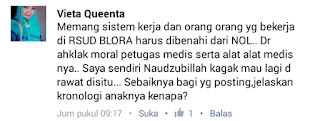 Berikut lampiran suara Netizen Blora di group facebook Blora Updates yang pernah secara langsung merasakan pelayanan rumah sakit umum di Blora.